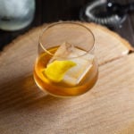 - Strain into a double old-fashioned glass over a giant ice cube.